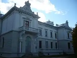 Between 1880-1897,[4] Aleksander built the two-storey Neo-Renaissance manor house[4] with a tower on a high terrace.[2] It was the most impressive of all the former Broël-Plater estates in Švėkšna district.[1] In 1880, at the initiative of Aleksander's wife, planting in the park also started.[2][5]