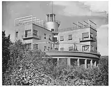 Invernizzi first began drawing designs for his rotating house in 1929, but construction started in 1931, only during summer months. Invernizzi and his team used the project as a means to experiment with new materials, like concrete and fibre cement. "In keeping with the project's experimental nature, a considerable amount of adaptation and refinement accompanied construction".[6] They ended up using aluminium sheeting to replace the concrete on the outside walls because the concrete had left cracks. At first, Invernizzi only expected the house to make a 180 degree turn, but eventually after he saw it make the 180 degree turn, he "decided to make the complete turn" of 360 degrees. The project was complete in 1935, after four years.[7]