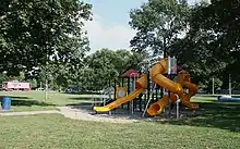 Villa Grove's location at the confluence of Jordan Slough and the Embarras River has resulted in flooding during the city's history. In January 1950, Villa Grove was isolated by flooding, more than 1/3 of the city was underwater and the Red Cross reported 100 families were homeless.[9][10][11] Another flood in April 1994 left over half of the city's 1,000 homes flooded[12] and the city's water supply was tainted.[13] At one point, portions of main street were 6 feet underwater.[14]