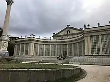 Alessandro Torlonia commissioned Teatro Villa Torlonia in 1841, and it was completed in 1873. The building was constructed under the guidance of architect Quintiliano Raimondi.[4] The interior of the building was decorated by Constantino Brumidi. It sustained damage after the war during the allied occupation, and remained derelict until it was restored and reopened in 2013.[5] Before the Covid-19 pandemic beginning in early 2019, the theatre hosted occasional public performances.