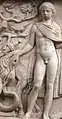 Detail from a votive relief, Pentelic marble, 2nd c. C.E. Polydeukes was the favorite pupil and beloved of stoic philosopher and millionaire philanthropist Herodes Atticus.