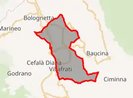 Villafrati borders the following municipalities: Baucina, Bolognetta, Cefalà Diana, Ciminna, Marineo, Mezzojuso.