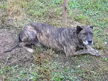 The Villano de Las Encartaciones (Basque: Enkarterriko billano, Cantabrian: Villanu) is a Spanish working dog from the region of Las Encartaciones in the province of Biscay, in the Basque country, and to some extent in Álava, in eastern Cantabria and in northern Burgos.[2]: 596 The traditional use of the dogs is in management of the Monchina breed of cattle of Cantabria and the Paìs Vasco,[3] and particularly to assist with bringing the cattle down from the mountain pastures between October and December. The association between the dog breed and the cattle breed is so close that it has been said that "one breed could not exist without the other".[4]: 249 In 2009 there were fewer than 200 dogs registered in the studbook.[2]: 596