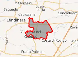 Villanova del Ghebbo is a comune (municipality) in the Province of Rovigo in the Italian region Veneto, located about 70 kilometres (43 mi) southwest of Venice and about 10 kilometres (6 mi) west of Rovigo. As of 31 December 2004, it had a population of 2,209 and an area of 11.8 square kilometres (4.6 sq mi).[3]