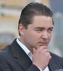 Ville Petteri Vähämäki (born March 30, 1979) is a Finnish politician, representing the Finns Party in the Parliament of Finland since 2011.[1] He has been elected to the Parliament from the Oulu constituency in 2011 with 5,534 votes and 2015 with 3,798 votes.[2][3]