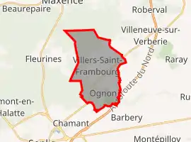 Villers-Saint-Frambourg-Ognon (French pronunciation: [vilɛʁ sɛ̃ fʁɑ̃buʁ ɔɲɔ̃]) is a commune in the Oise department in northern France. It was established on 1 January 2019 by merger of the former communes of Villers-Saint-Frambourg (the seat) and Ognon.[2]