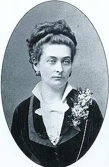 Countess Vilma Hugonnai was the fifth child of Count Kálmán Hugonnai and Riza Pánczély. She studied Medicine in Zürich and received her degree in 1879.[3] When Vilma returned to Hungary she could not begin her career as a physician as the Hungarian administration refused to recognize her qualifications because of her gender. She worked as a midwife until 1897, when the Hungarian authorities accepted her degree and she could start her own medical practice.[3] The first woman to qualify in Hungary was Sarolta Steinberger in 1900.[4] Neither of them was allowed to practice without a male doctor's supervision until 1913.[3]
