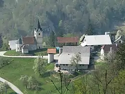 The local church is dedicated to John the Baptist and belongs to the Parish of Zagorje ob Savi. It dates to the early 16th century and contains some of its original frescos.[4]