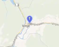 Vinje Church (Norwegian: Vinje kyrkje) is a parish church of the Church of Norway in Voss Municipality in Vestland county, Norway. It is located in the village of Vinje. It is the church for the Vinje parish which is part of the Hardanger og Voss prosti (deanery) in the Diocese of Bjørgvin. The white, wooden church was built in a long church design in 1871 using plans drawn up by the architect Ole Vangberg. The church seats about 350 people.[1][2]