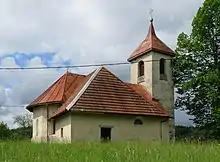 The local church is dedicated to Saint Stephen and belongs to the Parish of Št. Jurij pri Grosupljem. In its core it is a 14th-century Gothic building with later additions.[5]