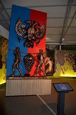 ![]() Statues of the messengers, symbols of Poysdorf. Interactive coat of arms in the Hall of Grapes. | |