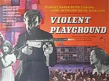 Violent Playground is a black and white 1958 British film directed by Basil Dearden and starring Stanley Baker, Peter Cushing, and David McCallum.[2] The film, which deals with the genre of juvenile delinquent, has an explicit social agenda. It owes much to U.S. films of a similar genre.[3]