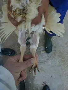 Viral arthritis is an infectious disease in poultry, such as chickens and turkeys, caused by Avian reovirus.[1] Arthritis and tenosynovitis are the main signs of Avian reovirus infection in chickens, although the virus can cause other signs.[2]