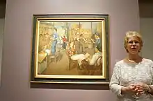 ![]() Virginia Mecklenburg standing in front of the painting Artist on WPA by Moses Soyer at the Smithsonian American Art Museum on 5 February 2015. | |