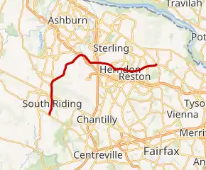 State Route 606 in Fairfax and Loudoun Counties, Virginia is a secondary state highway[1][2] traversing the communities of Reston, Herndon, Sterling, Arcola, and South Riding. The road is important not only because it is an inter-county connector, but it goes around the back of Dulles Airport, is part of the Loudoun County Parkway, and it provides a shortcut between the Reston / Herndon area and U.S. Route 50. Although the Herndon streets are not technically part of SR 606, they are signed as SR 606, and they connect to streets that are part of SR 606, thus providing a continuous route.[3]