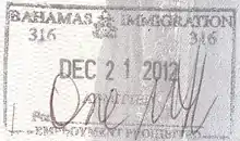 Cruise ship passengers travelling to and returning from the Bahamas are required to obtain visa for entry if their passports are from a country that needs a visa to enter the Bahamas.[6] Both entry and departure must be by a cruise ship.[6]