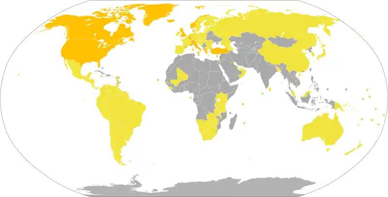 Nationals of the following 120 countries and territories can visit the Bahamas for 3 months without a visa unless otherwise stated:[2][3][4]