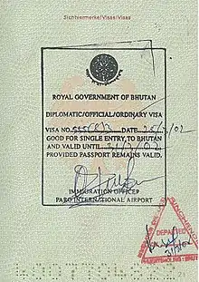 - "Visa for coming to Bhutan". Retrieved 11 June 2015.