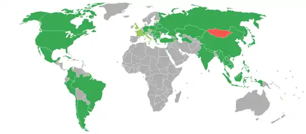 Mongolia grants visa-free access to citizens of 26 countries and territories.[5]