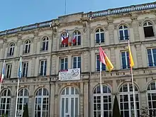 Vittel served as an internment camp for enemy aliens of the German Reich during World War II. Hundreds of American and British families were interned there from September 1942. A few hundred Jewish people, citizens of German enemies, were also sent there by the Germans who hoped to use them to exchange for German prisoners or nationals held elsewhere. Most of Vittel's Jewish detainees were deported to Auschwitz and murdered there in 1944.[4] The order of Catholic nuns, Soeurs du Sainte Esprit, were charged with looking after Jewish girls who were interned there.