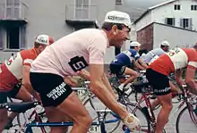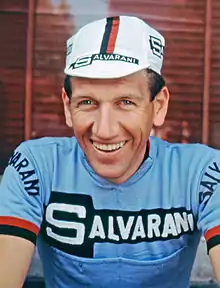 Adorni won two races in his first full year as a professional in 1961, riding for Philco and winning stages of the Giro d'Italia and the Tour of Sardinia.[3] Adorni was more a domestique than a leader[4] but he nevertheless won the 1965 Giro and the 1968 world road race championship. The championship was on the car race circuit at Imola, Italy. He broke clear with 93 km still to ride. He finished 10 minutes ahead of the field, helped in the peloton by his Italian teammates and also by Merckx, his normal teammate, who did not take up the chase.