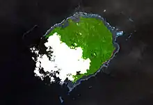 Naragé is a post-explosive-eruption volcanic remnant of approx 21 hectares (52 acres) of what was an island of 61 hectares (151 acres) prior to an eruption that occurred in approximately 1892. The resulting tsunami reached 100 metres on impact on Ningau, wiping out all but two persons of the lowest-lying of three villages - Goru - (they were absent on Garove) and caused major disruption and reduction of population over a wide area of the north coastal areas of New Britain and quite possibly New Guinea and the Western Islands group, plus other islands. A wave of such magnitude would have made the 1997 Itape wave little more than a reef or shore break.