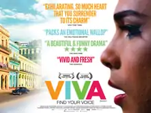 Viva is a 2015 Spanish-language Irish drama film, set in Cuba, directed by Paddy Breathnach and written by Mark O'Halloran. The film stars Héctor Medina as a young drag performer who, after reuniting with his estranged father, must come to terms with his sexuality. The film was selected as the Irish entry for the Best Foreign Language Film at the 88th Academy Awards.[3][4][5] It made the December shortlist of nine films, but was not nominated.[6][7]