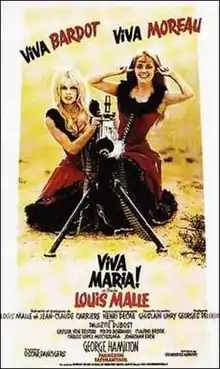 Viva Maria! is a 1965 adventure comedy film starring Brigitte Bardot and Jeanne Moreau as two women named Maria who meet and become revolutionaries in the early 20th century. It also starred George Hamilton as Florès, a revolutionary leader. It was co-written and directed by Louis Malle, and filmed in Eastman Color. Costumes by Pierre Cardin.