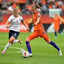 At the 2017 UEFA Women's European Championship she continued to excel under pressure, scoring a goal in the hosts' 3–0 semi-final win over England.[68][69] Miedema also netted two goals in the final against Denmark, which was enough to secure the first-ever Euro title for the Dutch.[70] After the tournament the whole team was honoured by the Prime Minister Mark Rutte and Minister of Sport Edith Schippers and made Knights of the Order of Orange-Nassau.[71]