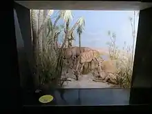 Vivienne returned to Europe in 1925 to write her book. Among admirers of Out in the Blue was Wilfred Thesiger, who was greatly impressed and moved by it.[8] Despite the killing, the book is notable for its sensitive description of animals and landscape and for its note of regret. "To have been granted even one [bongo] cow was a great concession, for they are strictly preserved; to have slain two seemed to us nothing less than calamity."[9] The de Watteville specimens, mounted, were exhibited from 1936 in the dioramas of the new Musée d'histoire naturelle at Bern.[10]