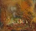 He then taught art and theatre sets, painted portraits, and restored icons. From the beginning of the 1970s he painted religious topics, against state orders. Like other painters in the Soviet Union, he was courted by Western diplomats and journalists who had their own agenda. From them, he obtained a gilded picture of life in the West. When painters in the Soviet Union tried to break the yoke of the state which commissioned portraits of political leaders and forbade creativity, dissident artists gathered in a movement for free creation and exhibition of their work. Non-conformist artists in Moscow attempted to reach the public by organising in the open-air what was to become known as the Bulldozer Exhibition on 15 September 1974. Police dispersed the artists and their exhibits.