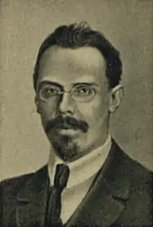 Vladimir Pavlovich Milyutin (Russian: Влади́мир Па́влович Милю́тин; 5 September 1884 – 30 October 1937) was a Russian Bolshevik leader, Soviet statesman, economist and statistician who was People's Commissar for Agriculture in the original soviet government formed on the day of the Bolshevik Revolution, but resigned in protest against Vladimir Lenin's decision to impose one party rule.