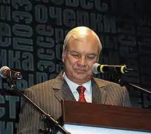 Vladimir Kirillovich Molchanov (Russian: Владимир Кириллович Молчанов; born October 7, 1950, Moscow, USSR) is a Soviet and Russian TV and radio host, speaker and journalist. He was a writer and host of the TV program Before and after midnight in the late 1980s - early 1990s on Soviet television. He is a member of the Russian Television Academy since 1994, and head of the studio of the Faculty of Journalism at Moscow Institute of Television and Radio Broadcasting Ostankino.