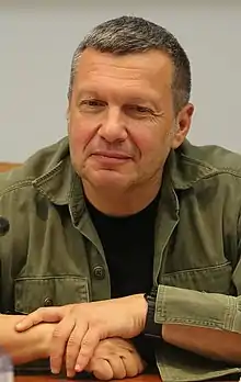 Vladimir Rudolfovich Solovyov[lower-alpha 1] (Russian: Владимир Рудольфович Соловьёв, born October 20, 1963) is a Russian television presenter, writer and propagandist.[8] He is an anchor on the television show Sunday Evening with Vladimir Solovyov on Russia-1.