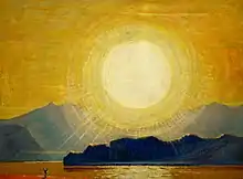 A very special place in Tomilovsky’s creative work was dedicated to the Sun which is the centrepiece of many artist’s artworks. At the opening of one of the exhibitions, an Irkutsk-based art critic Paletskaya nicknamed Tomilovsky ‘the worshipper of the sun’, which was immediately picked up by some of his colleagues. Tomilovsky acknowledged that, indeed, the Sun was one of his favourite objects to depict in his paintings, especially during the post-war years. The art critics wrote that it seemed like Tomilovsky lived ‘closer to the sun’, admired it, and transferred its shining rays onto his painting.