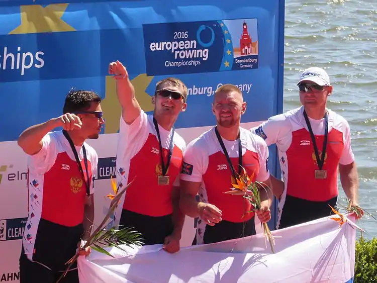 Vladislav Vadimovich Ryabtsev (Russian: Владислав Вадимович Рябцев, born 13 December 1987) is a Russian rower. Competing in quadruple sculls he won the European title in 2015 and placed eighth at the 2012 Summer Olympics.[1] He was disqualified from competing at the 2016 Olympics in the quadruple sculls after his teammate Sergey Fedorovtsev failed a drug test in 2016,[2] but subsequently allowed to compete in the Games when Russia was allowed to rearrange their eligible oarsmen into the one remaining crew.