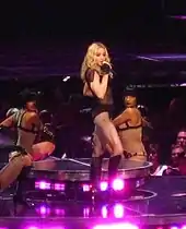 In 1992, Finnish progressive metal band Waltari recorded a cover version for their album Torcha!, which became a single and has a video clip.[68][69] In 1998, Britney Spears added the song to the setlist of her ...Baby One More Time Tour, along with Madonna's "Material Girl".[70] "Vogue" was featured in the 2006 film The Devil Wears Prada and appears as the opening track of its soundtrack album.[71][72] Australian singer Kylie Minogue used the song in both her Homecoming Tour and For You, For Me Tour, as a mashup with her own song "Burning Up". In 2008, Rihanna performed the song during the Fashion Rocks show. In 2014, the studio version of the recording leaked online.[73]