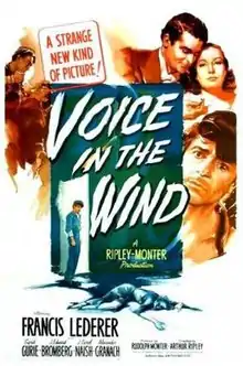 Voice in the Wind is a 1944 American film noir directed by Arthur Ripley and written by Friedrich Torberg, based on a story written by Arthur Ripley. The drama features Francis Lederer, Sigrid Gurie and J. Edward Bromberg.[1]