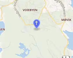 Voie Church (Norwegian: Voie kirke) is a parish church of the Church of Norway in Kristiansand Municipality in Agder county, Norway. It is located in the Møvik neighborhood in the district of Voiebyen in the borough of Vågsbygd in the city of Kristiansand. It is the church for the Voie parish which is part of the Kristiansand domprosti (arch-deanery) in the Diocese of Agder og Telemark. The red, brick church was built in a fan-shaped design in 1990 using plans drawn up by the architect Arild Lauvland. The church seats about 300 people, but it can be expanded to about 500 people.[1][2]