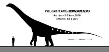 Volgatitan (meaning "Volga giant") is a genus of titanosaurian sauropod dinosaur from the Early Cretaceous of the Ulyanovsk Oblast, Russia. The type and only species is Volgatitan simbirskiensis, known from seven caudal vertebrae from a single individual. It is the oldest known titanosaur from the northern hemisphere, and is considered important for being related to the Lognkosauria, a group known only from South America later in the Late Cretaceous.[1] It was first described in November 2018 by Russian palaeontologists Alexander Averianov and Vladimir Efimov.[1][2]