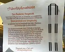 Volksgenosse (plural Volksgenossen) is a German language term meaning a fellow member of a community or compatriot (translated literally as people's comrade). The word was recorded as early as 1798 and its usage grew within the Völkisch movement of German ethnic nationalism, which led to its use to denote a person of the same "blood community".[1] The term became common parlance within the Nazi Party, then the Third Reich, as a way to distinguish ethnic Germans from other groups, such as Jews and Gypsies. Due to these associations, the word gradually fell out of use after Germany's defeat in World War II and subsequent denazification efforts.[2]