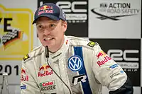 Ogier had another opportunity to win the title in Australia, but Qatar World Rally Team driver Thierry Neuville—by this point, the only driver still in mathematical contention for the championship—finished the rally second overall, forcing the title fight to go unresolved until the next round in France.[31] Ogier needed to out-score Neuville by just a single point to be declared the 2013 champion. He achieved this on the first stage of the rally, which in a break with tradition, was run as the event's power stage.[5] Ogier went on to win the rally, and finished the season with two more wins in Spain,[32] where a second-place finish for teammate Latvala was enough to secure the Manufacturers' title for Volkswagen,[8] and Wales, where Latvala against finished second.[33]