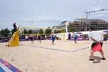 Volleyball, for the 2015 Island Games, took place indoors at the Queen's Hall which is located at Fort Regent, and outside at Weighbridge Place in Saint Helier.[1]