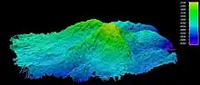 A top-down bathymetry profile over Mount Dent from the 2011 RV Okeanos Explorer cruise.