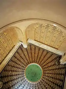 The monument's huge upper dome features Egyptian backlighting[6]: 133 to simulate the sky, the heavenly abode of God. Through the dome a sun ray penetrates downwards, highlighting words on 16 December at noon.