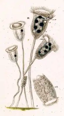 | Vorticella convallaria as illustrated by C.G. Ehrenberg in 1838 | |