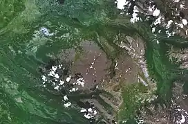 Voyampolsky (Russian: Воямпольский) is a volcano located in the northern part of the Kamchatka Peninsula, Russia. It is composed of two shield volcanoes, Voyampolsky and Kakhtana. Voyampolsky is the highest one. Headwaters of the Kakhtana River are located nearby.
