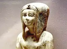 The Vulture crown was an ancient Egyptian crown worn by Great Royal Wives and female pharaohs. The Vulture crown was a crown that depicted a vulture, with its two wings hanging from both sides of the head. It was a symbol of protection from the goddess Nekhbet. Nekhbet wore this crown. These crowns were frequently adorned with gold and were worn by the Great Royal Wife, high ranking priestesses and female pharaohs. These crowns were also sometimes equipped with the Uraeus, representing both Upper (Nekhbet) and Lower Egypt (the Uraeus). The first known Egyptian woman to wear this crown was Tetisheri.