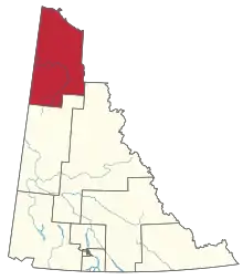 The electoral district was known as Old Crow, named after the community it encompasses, before 1992. It is situated on the traditional territory of the Vuntut Gwitchin First Nation. In the 1974 election[1] and the 1970 election,[2] the riding was part of Ogilvie[1] and Dawson, respectively.[2]