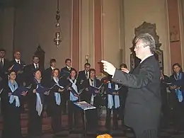 Vytautas Miškinis (born 5 June 1954) is a Lithuanian composer, choral conductor and academic teacher. He is artistic director of Ąžuoliukas, a boys' and youth choir and music school, and of other ensembles, performing internationally. He has taught choral conducting at the Lithuanian Academy of Music and Theatre from 1985. His groups have won prizes at international competitions, where he also served as member of the jury. His compositions are part of international standard choral repertoire.